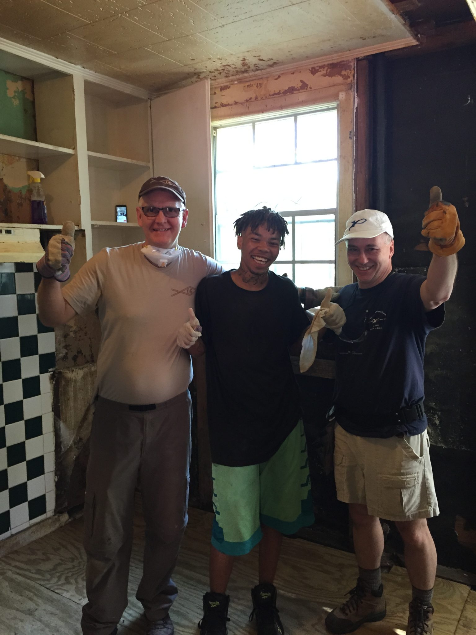 When we finished that week we had transformed Ms Frazier’s kitchen, bath and hallway….it was like one of those HGTV makeovers…but the rest of the house was still a huge mess. And, while we were all proud of what we did, I still felt twinges of sadness at what still needed to be done… But then here comes the big humbling moment….a few days after we left, Marianna got an email from our Mobile contact…apparently the grandsons, cleaned and painted the living room which was a MONUMENTAL task and chipped in to replace the filthy, honestly roach infested refrigerator…